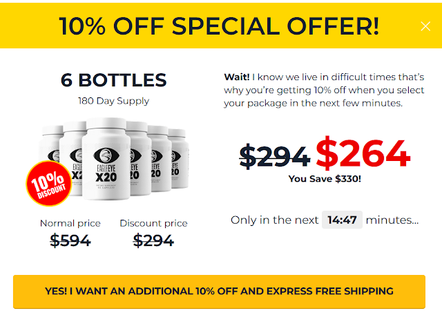 Clients can purchase Eagle Eye X20 from the authority site of the producer. It is ideal to buy certifiable items straightforwardly from the producer since the maker doesn't permit deals in other fixed foundations , or on commercial centers. Assuming that you buy this item straightforwardly to the organization, substantially less exorbitant than other fake items clients can get the best costs and most reasonable cost. Clients can without much of a stretch buy things on their authority site, pick one of the bundles, fill in the structure to request, and afterward have it conveyed to their homes inside a work days to guarantee fast conveyance.